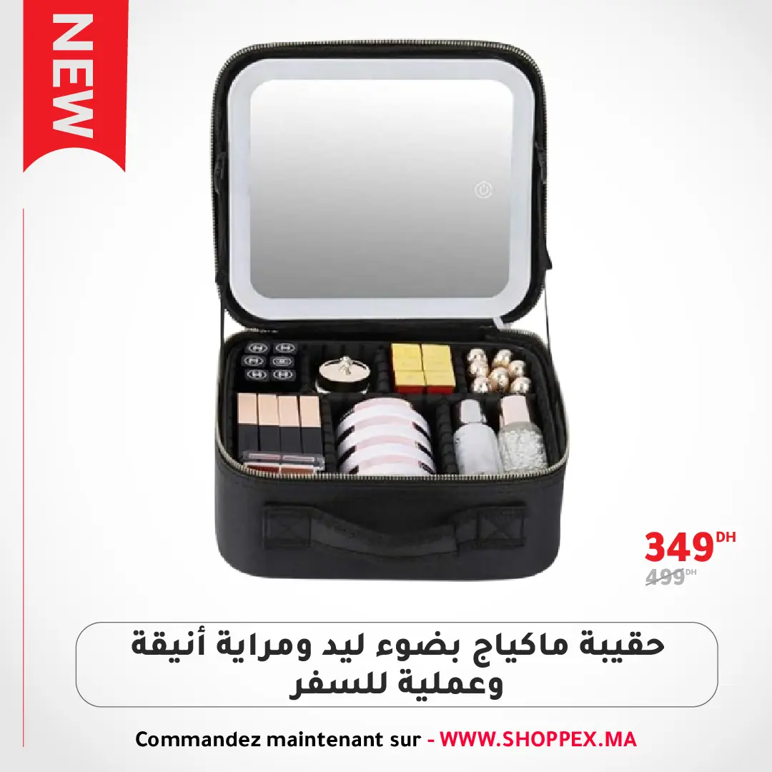 حقيبة ماكياج بضوء ليد ومراية أنيقة وعملية للسفر